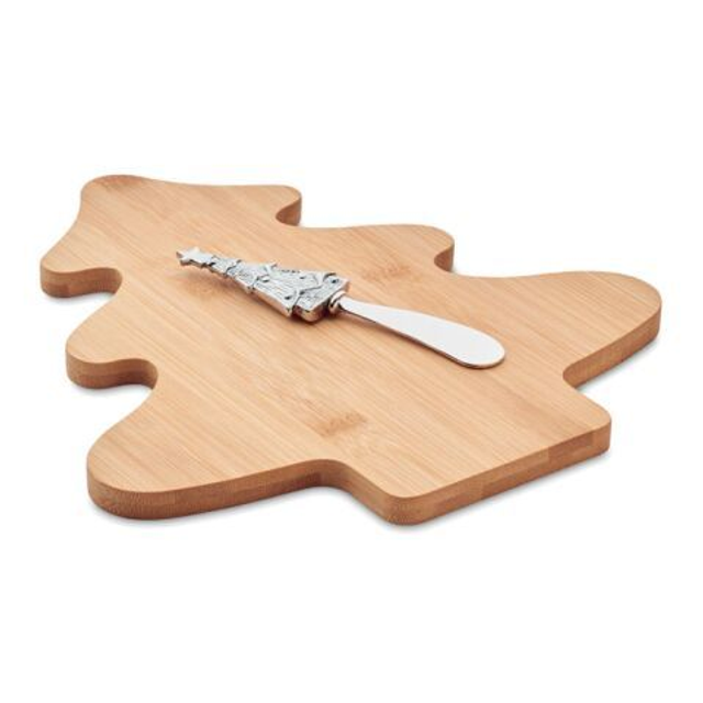 Tree-shaped bamboo cheeseboard set with knife cheese spreader in stainless steel. Bamboo is a natural product, there may be slight variations in colour and size per item, which can affect the final decoration outcome.